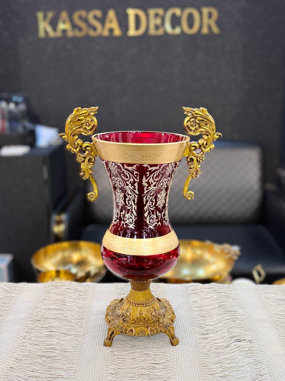 گلدان طلاکوب رنگ کاراملی کد ۹۰۱۳