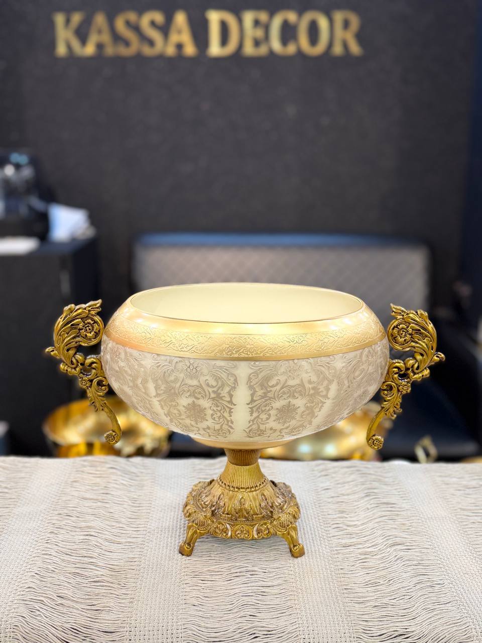 کشکول طلاکوب رنگ کرم کد ۹۰۲۲