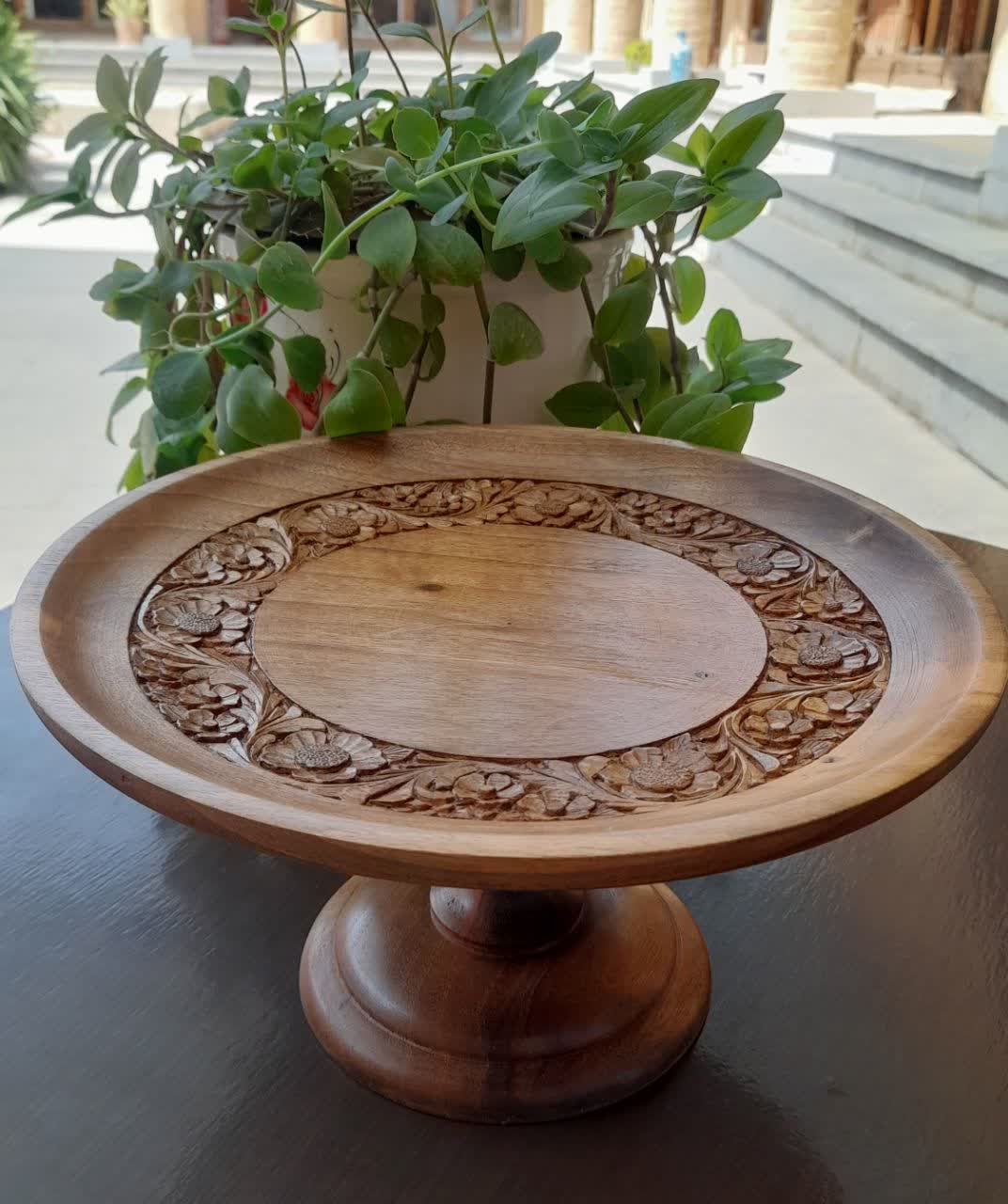 شیرینی خوری پایه دار منبت کاری شده،ترکیبی از چوب طبیعی و نقش های سنتی ایرانی،ساخته شده با دقت و ظرافت کامل است. مشخصات فنی محصول: نام محصول: مه نقش نوع کاربرد: پذیرایی ، تزئینی ، دکوراتیو جنس چوب: چوب گردو درجه یک ابعاد کلی: قطر دهانه حدود 22 cm ، ارتفاع حدود 16 cm نوع منبت کاری: نقش برجسته گل و بوته (منبت سنتی آباده)با اجرای دستی نوع پایه: پایه مرکزی استوانه ای (خراطی شده) پوشش سطحی:روغن گیاهی و لاک الکل رنگ چوب: قهوه ای روشن با رگه های چوبی قابل مشاهده بسته بندی ایمن و مناسب برای ارسال به سراسر کشور