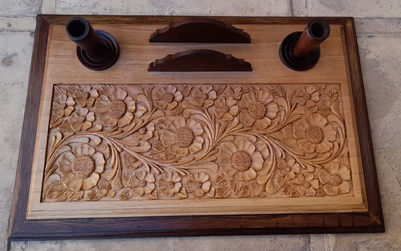 جا خودکاری منبت کاری شده رومیزی، ترکیبی از چوب طبیعی و نقش های سنتی ایرانی،ساخته شده با دقت و ظرافت کامل است. مشخصات فنی محصول: نام محصول: گل قلم نوع کاربرد:نگهداری قلم و خودکار،تزئینی رومیزی جنس چوب:گردو درجه یک( گردو تیره و گردو روشن) ابعاد: طول حدود17 cmو عرض حدود 14cm نوع منبت: نقش برجسته گل و بوته(منبت سنتی آباده اجرای دستی) پوشش سطحی: روغن گیاهی و لاک الکل رنگ چوب : گردو تیره و روشن قسمت نگهدارنده قلم هم بصورت چوبی( اجرای دستی) و هم بصورت برنجی قابل سفارش است  قابل سفارش به صورت تک و تعداد مناسب برایک میز کار،میز تحریر،دکوراسیون منزل یا محل کار به همراه بسته بندی ایمن و مناسب برای ارسال به سراسر کشور