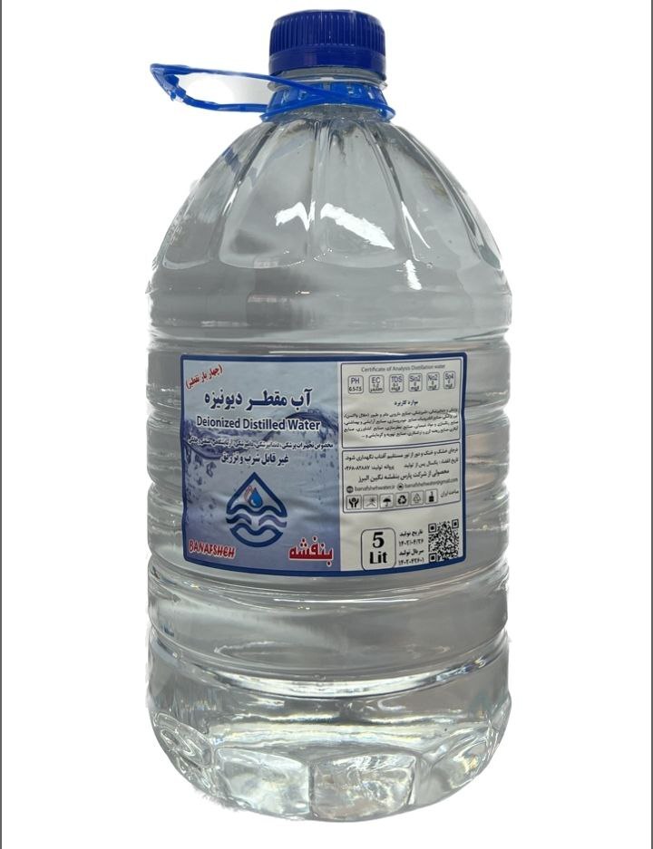 آب مقطر غیر شرب و آشامیدنی  4 بار تقطیر  دیونیزه شده  مصارف پزشکی ،کلینیک ها  ارسال سریع