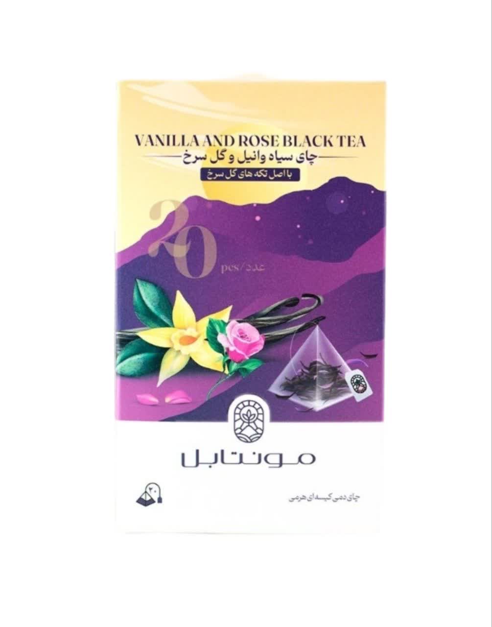چای سیاه وانیل و گل سرخ-کیسه ای هرمی- مونتابل