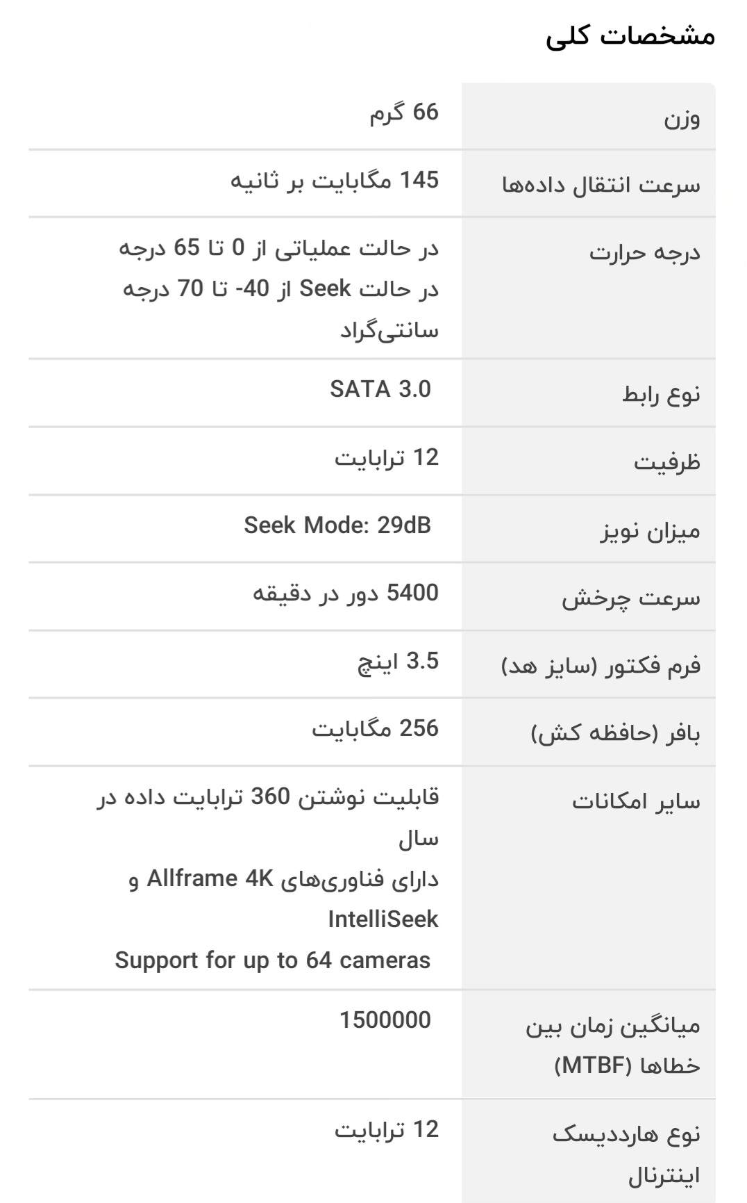 هارددیسک اینترنال وسترن دیجیتال مدل Purple WD121PURZ ظرفیت 12 ترابایت کد11085 اتمام موجودی 12 ترابایت سرعت انتقال داده ۱۴۵ مگابایت بر ثانیه بافر۲۵۶ مگابایت SATA 3.0 فروشنده فروشگاه پیمانافزودن به سبد خرید افزودن به سبد خریدافزودن به علاقه مندی ها نظرات هنوز نظری ثبت نشده اولین نفری باشید که نظر میدهید ثبت نظر نظر شما راجع به این محصول چیست؟ هارددیسک اینترنال وسترن دیجیتال مدل Purple WD121PURZ ظرفیت 12 ترابایت کد11085 چه امتیازی به این محصول میدهید. ★ ★ ★ ★ ★ نام شما عنوان نظر شما متن نظر شما